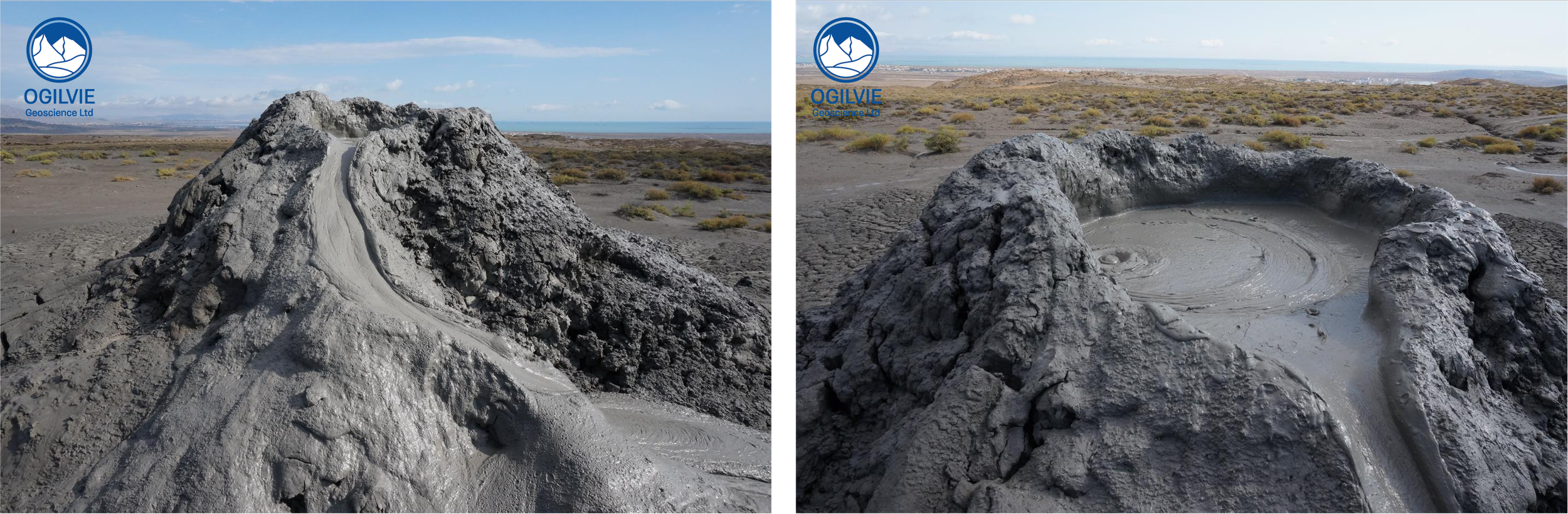 Mud Volcanoes are much smaller than normal volcanoes and according to Wikipedia, about half of those known to exist are found in coastal Azerbaijan. You can walk right up to the mud volcanoes and see the mud bubbling in the crater. The mud is linked to the deep underlying Maykop Shale which is the source rock for offshore (Caspian) reservoirs. The mud volcanoes below are at a place called Gobustan which we visited when living in Baku around 2015.